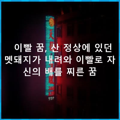 Hi~ 꿈해몽총정리입니다. 오늘 해몽 정보는 이빨 꿈, 산 정상에 있던 멧돼지가 내려와 이빨로 자신의 배를 찌른 꿈 관련된 꿈에 대해 전체적 정리합니다. 잘 확인 부탁드려요~