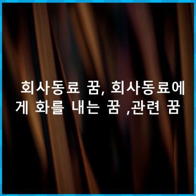 회사동료 꿈, 회사동료에게 화를 내는 꿈 ,관련 꿈 관련된 꿈알아보고, 유사꿈, 관련꿈 해몽모음입니다.
