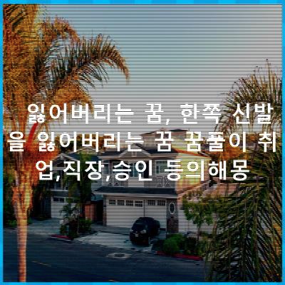 잃어버리는 꿈, 한쪽 신발을 잃어버리는 꿈 꿈풀이 취업,직장,승인 등의해몽 관련된 꿈 유사꿈, 관련꿈 해몽모음입니다.