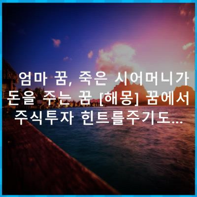 엄마 꿈, 죽은 시어머니가 돈을 주는 꿈 [해몽] 꿈에서 주식투자 힌트를주기도... 유사꿈 해몽