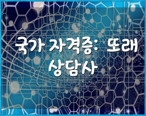 국가 자격증: 또래 상담사 알아 보았습니다. 상기 자격증정보가 모두에게 좋은 정보가 되셨길 바랍니다.