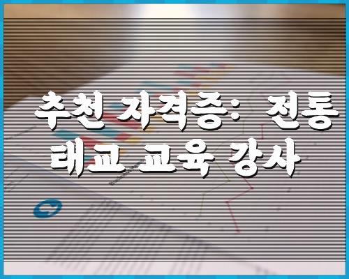추천 자격증: 전통 태교 교육 강사 알아 보았습니다. 찾으셨던분께 조금이라도 도움이 되셨으면 합니다.
