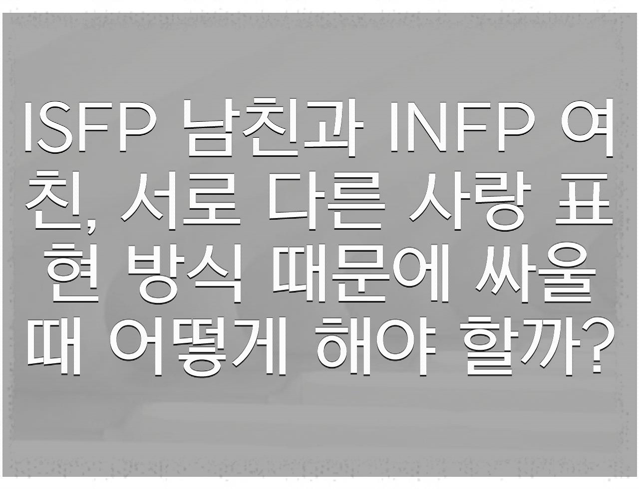 "여보, 나 좀 서운해..." 라고 말하고 싶은데, 혹시 이렇게 말하면 남친이 또 상처받을까 봐 망설여지는 INFP 여친들~ 그리고 "괜찮아" 라고 말은 했지만 속으로는 뭔가 찜찜한 ISFP 남친들~