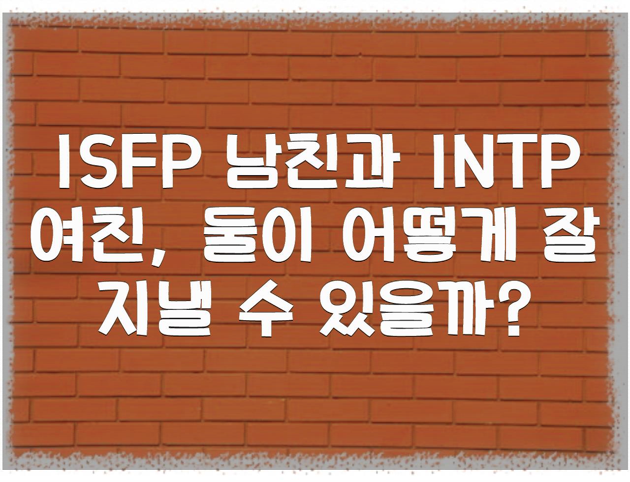 정리해드린 내용은 ISFP 남친과 INTP 여친, 둘이 어떻게 잘 지낼 수 있을까? 관련 정리 입니다. 조금이라도 도움이 되었길바랍니다.