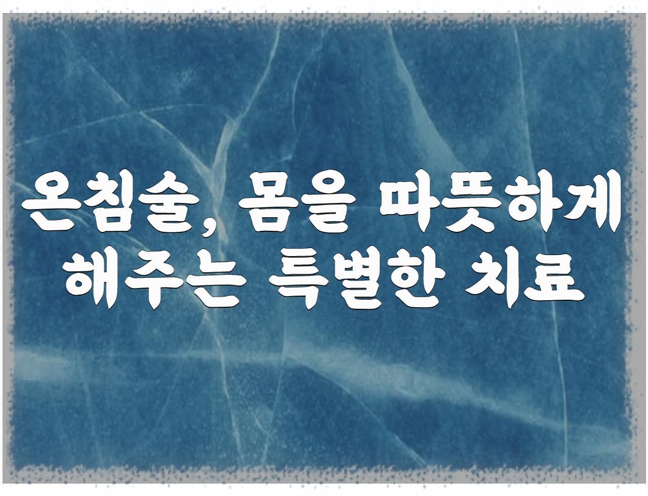 정리드린 내용은 온침술, 몸을 따뜻하게 해주는 특별한 치료 입니다. 필요한분께 도움이 될수있길 바랍니다.