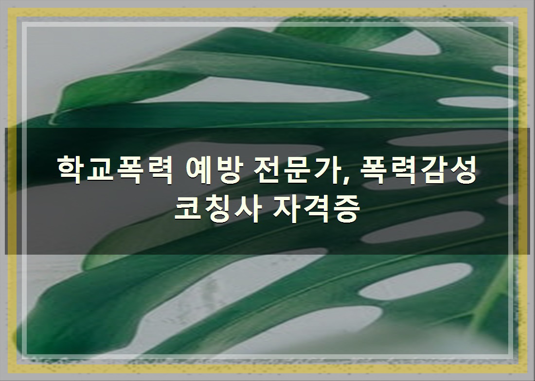 소개드린 글은 학교폭력 예방 전문가, 폭력감성코칭사 자격증 입니다. 좋은 내용이 되셨길 바랍니다.